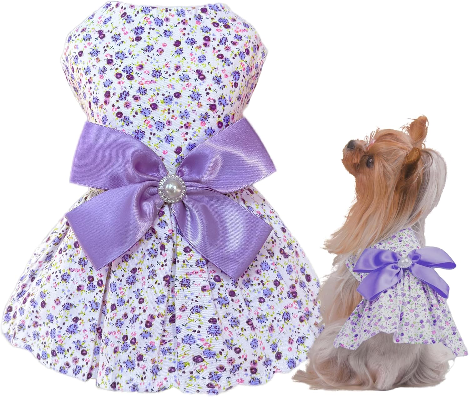 - Adorable Floral Design: The dress features a charming pattern of small purple flowers, accented with a vibrant purple bow, making it a perfect blend of cuteness and style for your furry friend