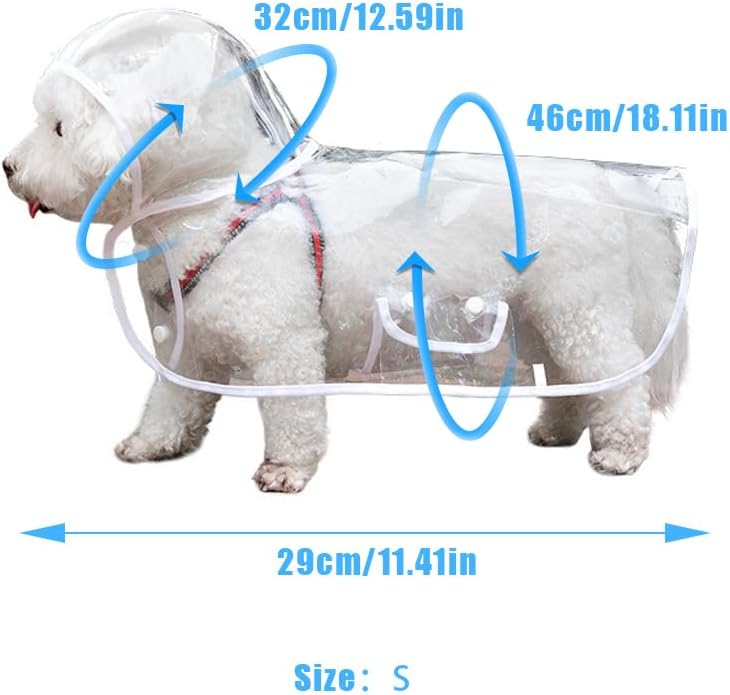 - Size information: Warm reminder, please choose the appropriate size according to the size of your dog.These transparent dog raincoats, available in four sizes Small, neck 32 cm, length 29 cm, chest 46 cm; Medium, neck 36 cm, length 33 cm, chest 50 cm;Large, neck 42 cm, length 41 cm, chest 60 cm Please choose according to the actual size of your pet. Be sure to open the garment by pulling the buttons instead of pulling the fabric to prevent excessive tearing of the raincoat