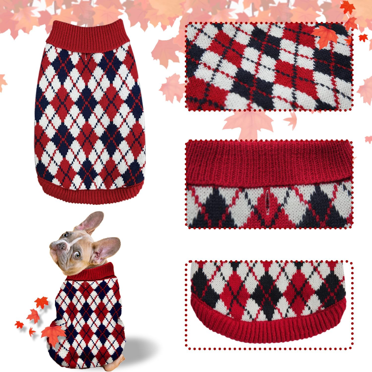 • Classic Style – Color blocking Rhombus Plaid Vintage Cable-knit ,more charming and good looking during the cold winter, and perfect for the holidays and daily wear. The Red one is perfect for Christmas and Thanksgiving. Bring a festive atmosphere to your furry friend.